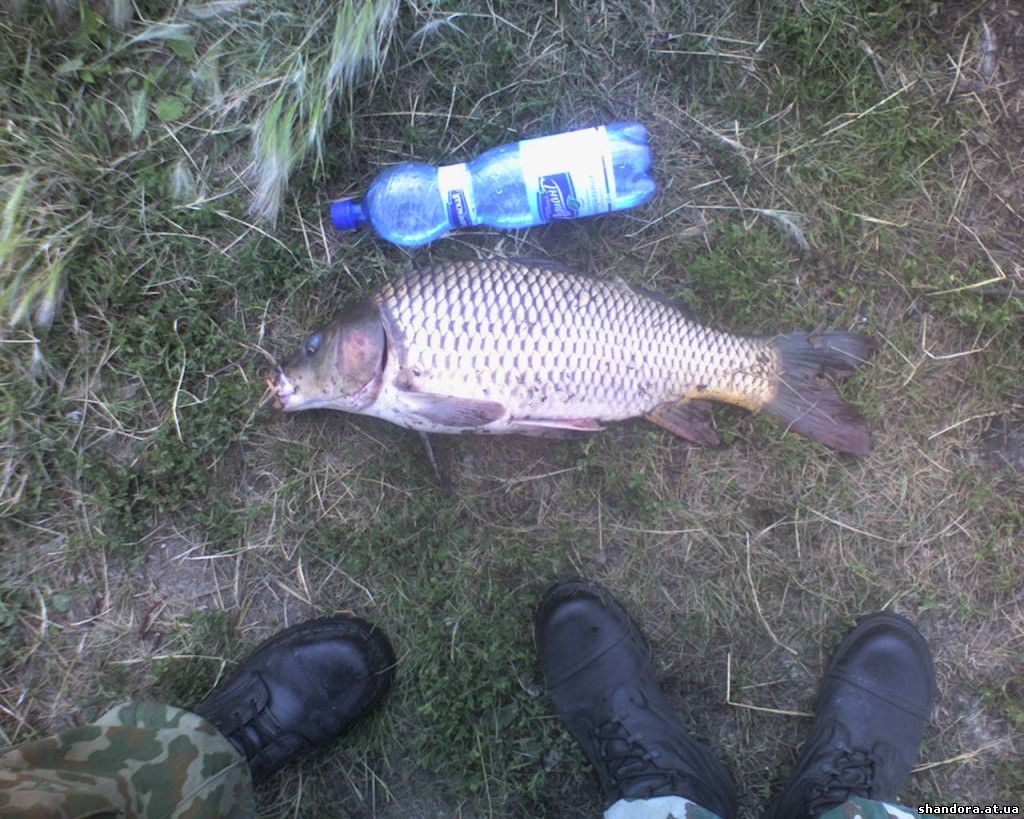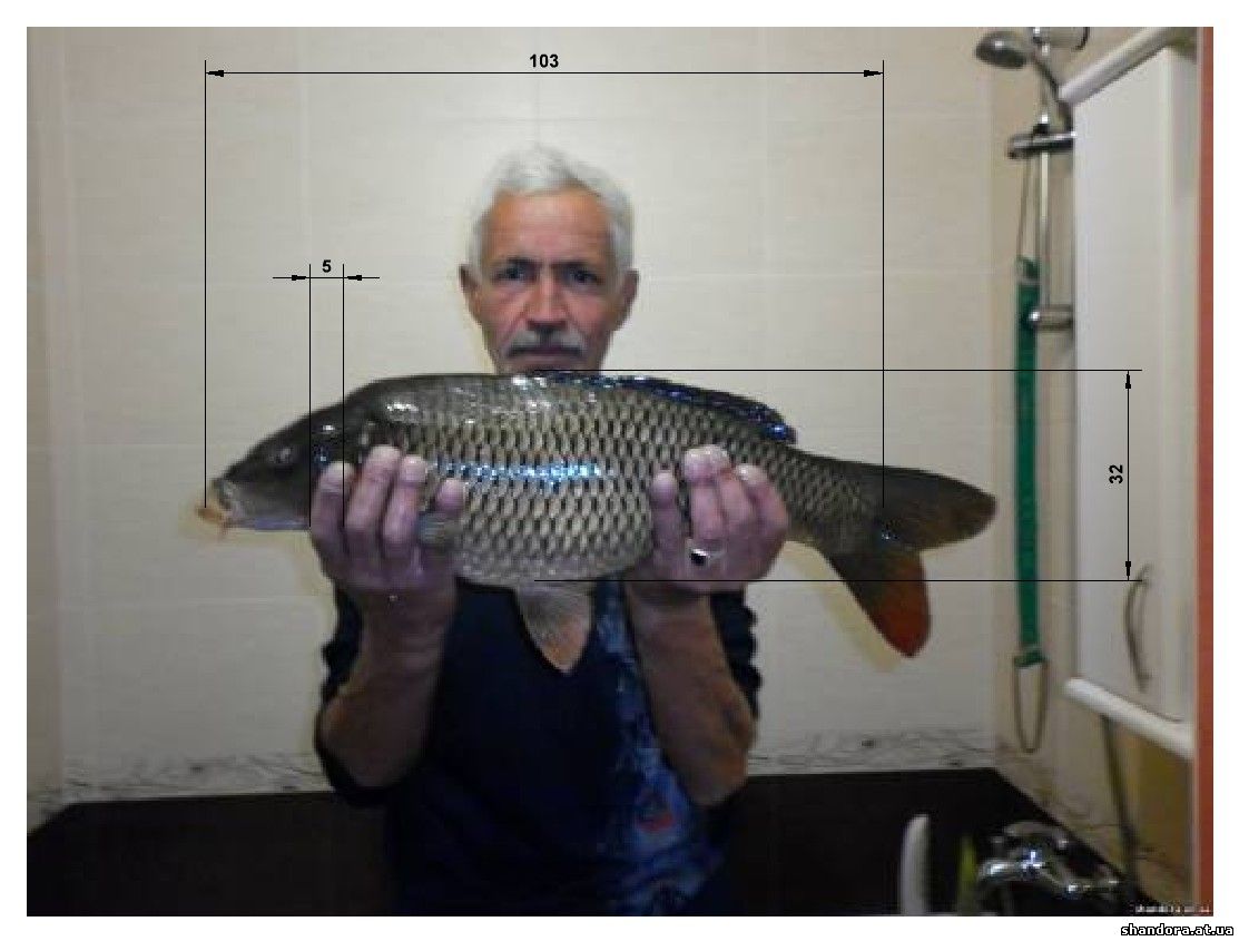 кг в самом лучшем случае.В письме к администрации с просьбой опубликовать рекорд Самат писал о весе в 6200, что видно из его собственного комментария к фотографии http://shandora.at.ua/photo/priroda_shandory/fotografija_1/7-0-250 . Оставим это на совести автора, кстати, приносим извинения, если карп все таки 6200 грамм. Как уже и писалось - администрации сайта все равно. А карп уже давно съеден и его бренные останки уже учавствуют в круговороте веществ в природе. Может мы ошиблись в расчетах? И зря подвергаем сомнению слова рыбака. (Ведь обычно рыбаки - народ чесный и приврать не любят) Читаем независимый источник - В годовалом возрасте он (карп) может достигать, например в Кременчугском водохранилище, 18-19, в пятигодовалом - до 51 см. Десятигодовалые особи достигают длины 67-70 см и веса до 7 кг. http://mobidik.zt.ua/publ/1-1-0-72 http://www.karasi.com.ua/blogs/8 Что собственно и подтверждает наши расчеты! Тем более, что чем больше возраст карпа, тем он становится тяжелее, а длина его растет уже не так быстро. И поэтому 4.5 кг - это самый оптимистичный вес карпа, пойманого Саматом. Для того, чтобы в дальнейшем не было вопросов, прорсьба представлять фото с маштабным предметом - линейкой, спичечным коробком, пачкой сигарет и т.п. Например, вот так -